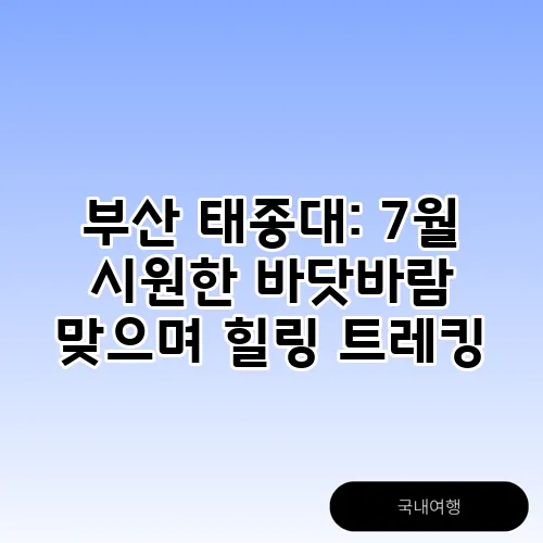 부산 태종대: 7월 시원한 바닷바람 맞으며 힐링 트레킹 2025년 07월 08일 by 방방곡곡 한국여행 베이스캠프 목차 ▼ Home 카테고리 없음 부산 태종대: 7월 시원한 바닷바람 맞으며 힐링 트레킹 부산 태종대: 7월 시원한 바닷바람 맞으며 힐링 트레킹메인 콘텐츠 생성 실패같이보면 좋은 글! 👉7월의 제주: 에메랄드빛 바 👉제주도 혼자 여행: 뚜벅이도 👉부산 여행 코스: 해운대부터 공유하기 게시글 관리 방방곡곡 한국여행 분류 전체보기